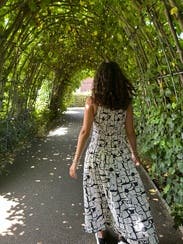 From straight on I found the midsection of this dress very unflattering. It made me look bigger than I think I am. The side view is great but that’s not how most people see me so I didn’t end up wearing it. I do like the print though. Maybe on different proportions this would work better.