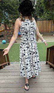 Pros- nice material for summer, light weight, flowing skirt, safe Cons- I felt like it made my shoulders look boxy