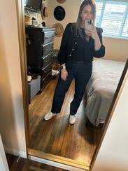 This top is so cute, flattering, and just a great transition piece! Wore as a little cardigan over a tank to a concert and then wore to work with a tank top under with works pants and jeans