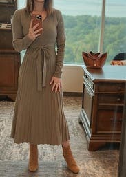 I liked this a lot for a cooler fall day. It is really comfortable but I found it needed shapewear and it was a little drab on video calls.