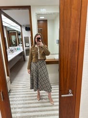 This skirt was perfect for a work conference with high boots and a turtle neck. Loved it for fall.