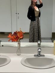 The skirt is a fun fall vibe but it’s a bit itchy and not exactly the most flattering skirt I’ve ever put on. Waistband is a bit tight too.