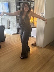Adored this jumpsuit! It’s really comfortable, flowy and sexy, and it’s so fun to wear. I am busty and didn’t wear a bra, which was totally fine because of the way this drapes — though I couldn’t bend over without flashing folks. Rent this!!!