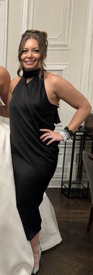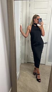 Great dress for cocktail wedding attire or a mid length option for a black tie event. Was very comfortable and fit so well! Everything was true to size. Great option ladies!