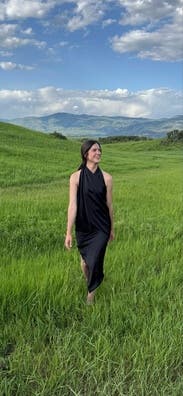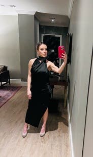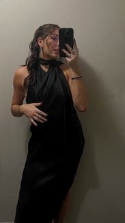 I felt glamorous on a rare night out to a holiday ball! The material was high quality and draped well. Just now realizing I forgot to tie the sash around the neck...oops! I often struggle with sizing given my athletic body type, so I was a bit nervous, but the 6 hugged me nicely. The 8 fit as well but with a bit more room. It was a bit confusing to get on, but referencing the photos and taking it a step at the time helped. Highly recommend!