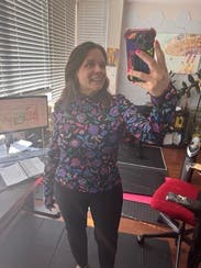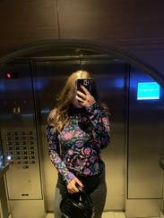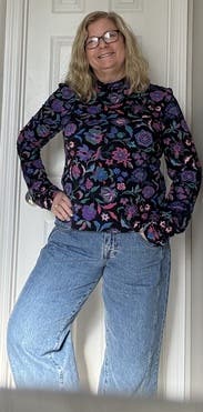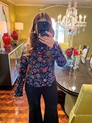 This is a fun floral top perfect for fall. Great material!