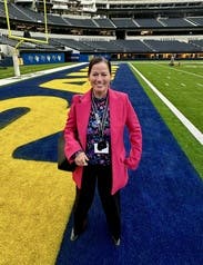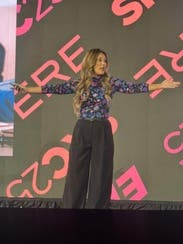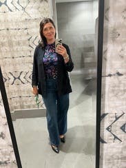 Loved the top paired with some wide leg pants. A Jean jacket on top was a good addition to the look. This one is a hit.