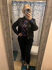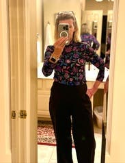 The colors were so vibrant and fun! Rented it multiple times. Make sure to put it in before you put your makeup on, as with many of these tight mock neck tops…very tight to put over your head. Still so cute! And comfortable