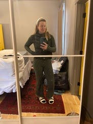 I loved these pants and decided to keep them for at least another round. They fit great, are super comfy and have a subtle but unique pattern. Something I did not notice when looking is that the dots actually go in two different directions (horizontal and vertical) on each leg - another subtle twist I loved!