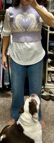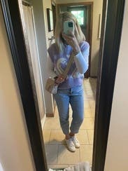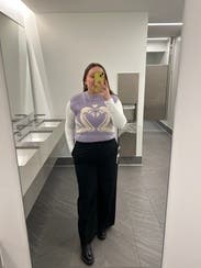 This sweater is so cute, I just wish it fit better. The arm holes are really big, so your bra would be visible if you want to wear the sweater on it’s own. Ended up styling it over a white button down and got tons of complements! It just still felt a bit too boxy for my taste, despite the cute color and design.
