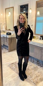 It’s a bit short so it’s a better fit for date nights or parties. The fit is comfortable