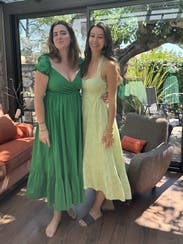 The dress it’s cute and fits right. Downside gets wrinkle easily and the top where it ties it’s bulky.