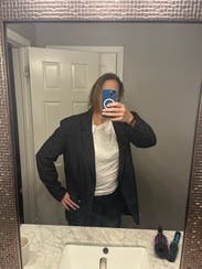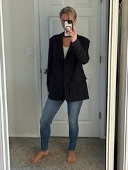 I really enjoyed wearing this oversized blazer. I paired it with the matching pinstripe trousers. It was a comfortable, fun and fashionable outfit for the office. I will definitely rent again. The blazer is truly oversized so if you don't want it too big you might wanna size down.