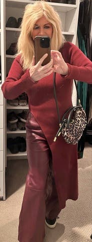 I wore with my leather look Spanx leggings and booties. Loved the look.