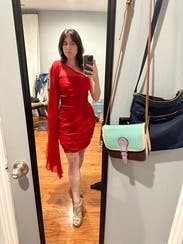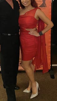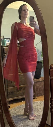 I wore this dress to host a holiday party in NYC and I felt like a million bucks! The dress is an attention-grabbing bright and bold red color that hugged my curves. I also loved the cut-outs on the side and the beautiful material. However, the dress was big in the chest area and tight around my thighs. The sleeveless side of the dress slouched down a few times throughout the night, revealing my half-bra, which was annoying. In addition, the side cuts are high, so you could see the bottom of my bra at times. As a result, I ended up tucking the dress underneath my bra. This dress may fit well on average-height women with slim hips and thighs and big boobs who can fill out the chest area. (I'm short with a small chest and thick thighs.) I would also highly suggest wearing a red half-bra or a bra that matches your skin tone just in case it shows.