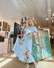Aston Studio “Marley” Dress (Pool Bouquet or Powder Fleur) is a bright, breezy button‑up midi with short puff sleeves, a skirt that floats with every step, and a waist‑cinching belt—pure summer joy. Add minimalist sandals and a raffia bag to let the print shine on sunny afternoons.