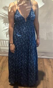 Bought this for a beach vacay but returned it due to the amount of fabric and difficulty of tying the back. I thought I’d be fine but it is real hard to figure out and it was too long for me… I’d have to wear at least 3 inch heels to not trip over it
