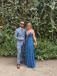 Absolutely loved this dress! As a small chested gal, it fit perfectly and I just wore pasties. The strings are complicated for sure. I don’t think I did it right but whatever I did (pictured) worked and held up the entire wedding and reception! Very flowy and comfortable, and I was thankful for the slit for ventilation!! The color is truly stunning, too.