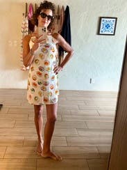 I got a ton of compliments on this dress and love the playful print. It was short on me but not unwearable. The ties on the side did come undone a couple time. It does wrinkle easily and I also found the weight of the dress tends to pull the top down so the inside of the seam shows. I used a piece of fashion tape to hold it in place during dinner.