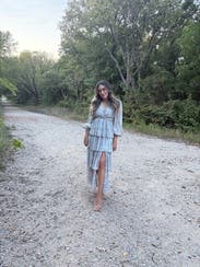 Rent this stunning dress! Great fit. Endless compliments. Love that you can tie in the back and further accentuate your waistline. Flowing and stunning. Slit help to keep my legs cool on a warmer summer day. Overall so complimenting and it’s one of my favorite rentals recently.