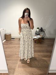 I love all the summer colors but sometimes want the flowy summer maxi with a neutral print. This was it! The fabric was super light weight with a thin slip to avoid it being see through. I was glad this had a slit in the Florida summer heat. The top is smocked and super stretch and the back is completely adjustable with the ties. This could just be the fact that I’m 28 weeks pregnant here but i did have to tie the top pretty tight so that the smocked front would stretch out to not give too much side boob. Maybe something to consider if you’re larger chested.