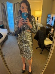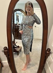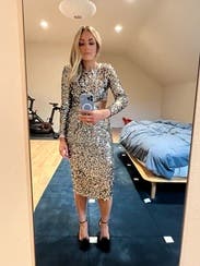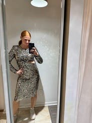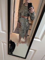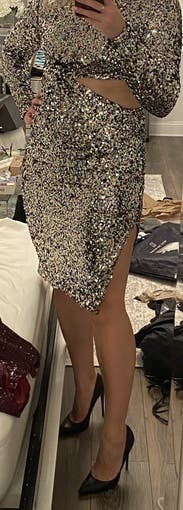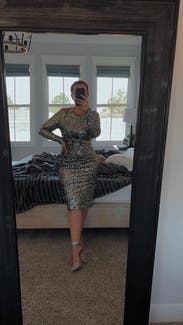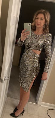 Love the fit of this! Got many compliments on the sparkles and fit! Perfect for a fun holiday party with friends.