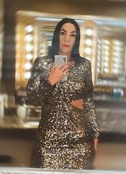 Super stretchy and comfortable! I wore it for a bachelorette party, but would be perfect for any party and would rent for NYE if I was looking for something to wear. The sparkle is a show stopper! Loved everything about it! I’m almost 6 feet tall and wore heels and the length was perfect. I didn’t even take the L out of the bag (my extra) bc the medium fit so well.