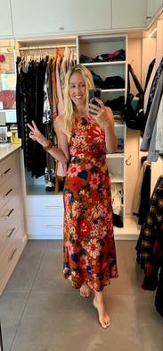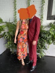 I wore this to an early fall beach wedding and it totally fit the vibe! I did end up wearing the back-up size (XS) instead of S so I would say it runs larger. The fabric quality was great and the pattern was so pretty!