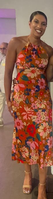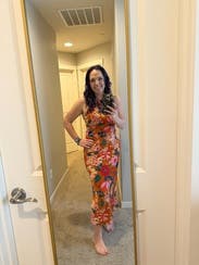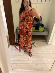 Got so many compliments. Husband loved. Very flattering and sexy too. Great vacation dress. Beautiful colors for warm and darker skin tones. Will rent again.