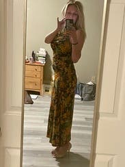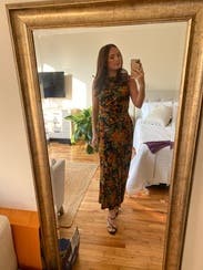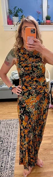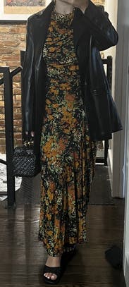 What a comfy dress!!! I wore this to a wedding and it was a very fall vibe dress but the dress I originally reserved wasn’t able to ship and this was a last minute replacement. It was a lot of cloth so it def can look frumpy but overall it was a suuuppper comfy dress and hugged the right areas and hid the ones you wanted hidden.