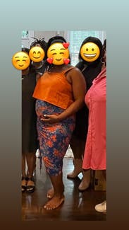Waist was a little tight but not too much to not wear. Loved this with a white top but could do orange too. Sexy, form fitting. Being shorter I loved that you could pull the ruching more to shorten it a bit. Fun and different!