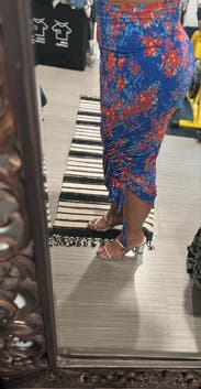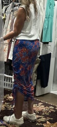 The colors, the pattern, the ruching, the fabric, the fit - everything is perfect! Rent this skirt