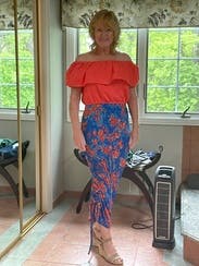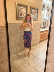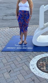 I wore this skirt with a pretty orange top (sorry, no photo) to a play. It was really fun and the ties at the bottom would have been great flair on a dance floor. I am on the taller side and this skirt was a good length.