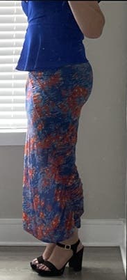 Loved the versatility…wore it down to my ankle and up at my knees and inbetween! Paired with blue shirt one time and orange another! Completely different looks! The lining layer under it was far too short for this curvy lady! So I added another skirt under it as it was too see through without something where liner is not. Would rent again!