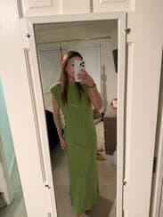 I absolutely loved this green dress! It was extremely comfortable and could be dressed up or down. I wore it for a casual evening out with lots of walking and it was perfect!