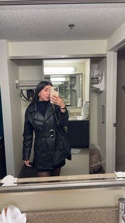 Loved this jacket, can be dressed up or down and was perfect for a cold day. My only issue was that the belt wouldn’t stay put and throughout the day, kept loosening so that my jacket would eventually open