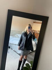 Fun faux leather coat. Not heavy so it wont keep you very warm, but it was fun for nights out and as a light jacket to work!