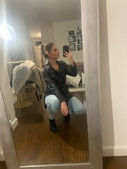 I love the material - although it left a little black specs on my hands, the jacket was so cute and versatile. I wore it on dates, to work, casually at brunch etc. it dresses up any outfit -- especially the buckle!