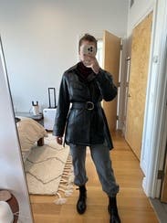 Wore this to Athens in March and it was perfect for traveling as it could be dressed up or down. I also like that the belt is adjustable but not a very long length like other belted leather jackets. A solid pick!