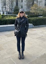 I lived in this jacket on my recent trip to London. The weather was in the upper 40’s/lower 50’s and rainy - the jacket always kept me warm. The slightly longer length made it easy to pair with a more formal outfit, and it adds a nice edgy touch to a more casual outfit.