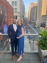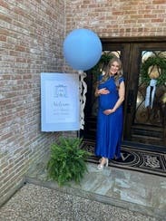 Sized up 2-3 sizes for third tri and worked great for a formal event! Currently 35 weeks and 175lbs
