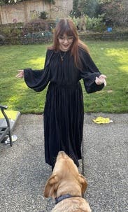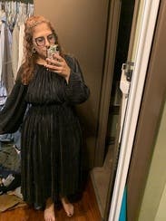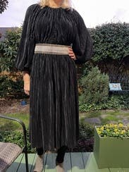 I've rented this twice now for two very different occasions (a work holiday party and a funeral) but speaks to how versatile it is for styling. I sized down as it is a good bit of fabric and the waist cinch is stretchy and not restricting.