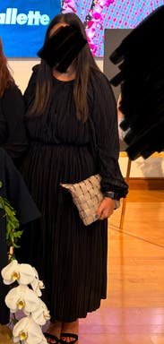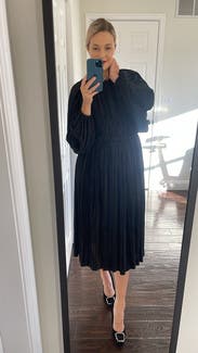 Wore twice to church. Received so many compliments on this dress! Very flattering, the model pictures do not do it justice. I ended up buying the dress, it’s a timeless black dress.