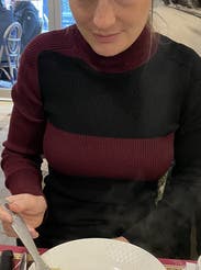 The knit isn’t too thick or heavy. I wore it to a work event, dinner with family, and date. Loved the burgundy details!