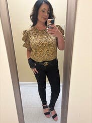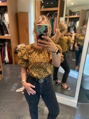 I had conflicting feelings on this shirt... I was expecting the material to be more on the silky side, but it's stiff. It is also very boxy, which I'm not a huge fan of. I ended up wearing an elastic belt around my waist and tucking the bottom under it to give it some sort of shape. I loved the sleeves, and while I'm not generally an animal print fan, I did like it on this shirt. Was fun to wear for a girls' night! Fit is true to size.