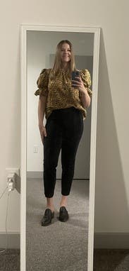 This top was super fun! Easy to dress up or down. My only complaint is that the elastic in the sleeves was tight, but not uncomfortable. Loved the poof in the sleeves! Would definitely rent again.