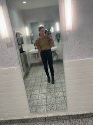 I got so many compliments on this shirt! Black jeans, black pants, skirts, anything! Too cute!