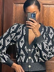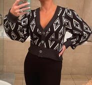 I rented this cardigan and matching bra top. The set is so cute, and somehow the pattern and sweater are super flattering! It's really versatile too. I wore this outfit a lot and got so many compliments each time! Would love to buy it but it's pretty pricey.