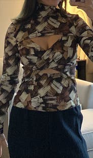Such a great, unique top! Fit me like a glove, so I’d say size up because I’m normally an 8 and got this in a 10. Matches with so many different colors and types of bottoms