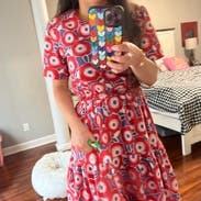 The color and print are adorable, but the waist of this dress is super tight. Also, the bow tie in the front wouldn't stay and kept coming loose.